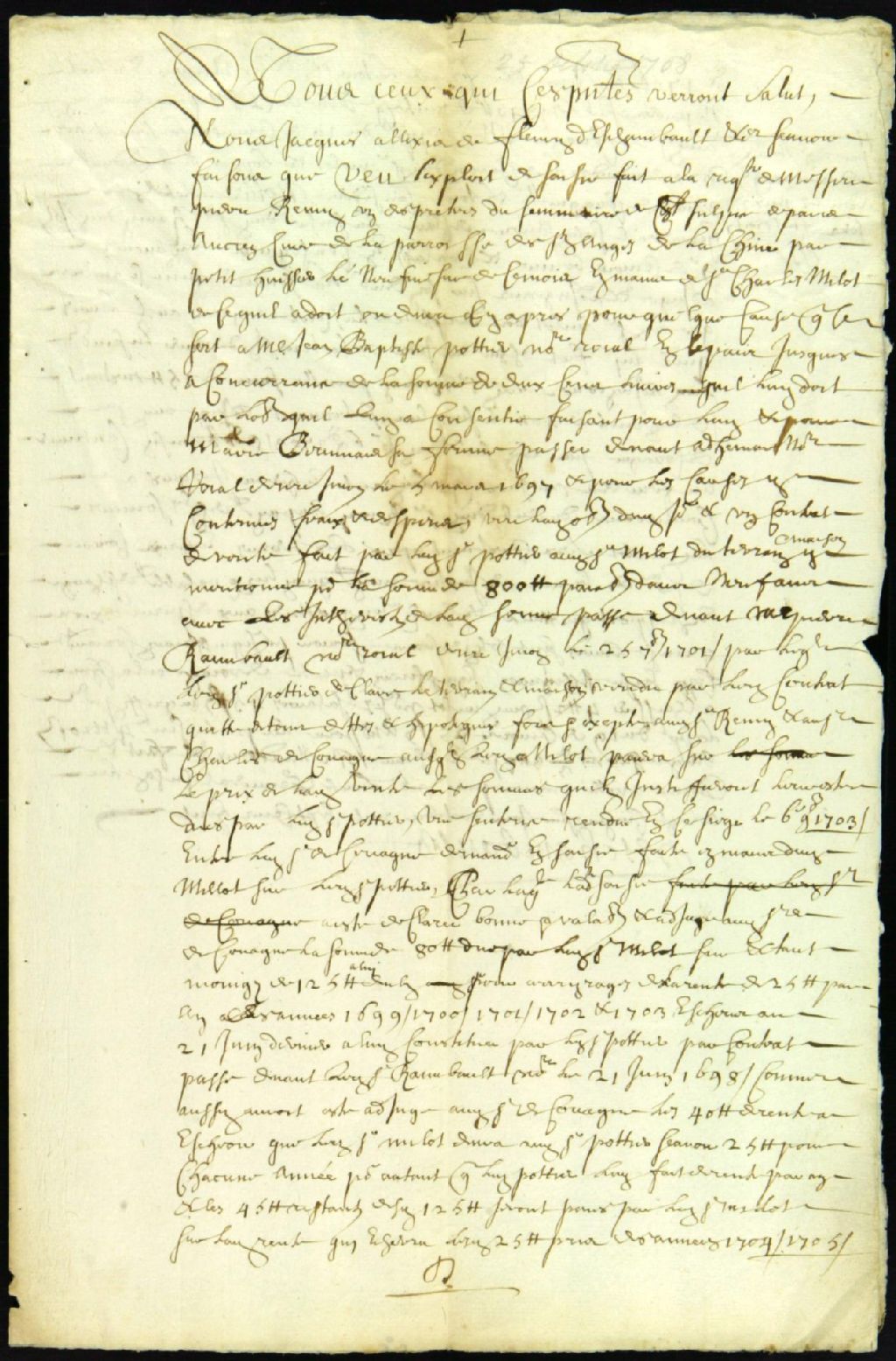 - Procès entre Pierre Rémy, prêtre du Séminaire, et Jean-Baptiste Pothier, notaire royal, pour non paiement d'un billet