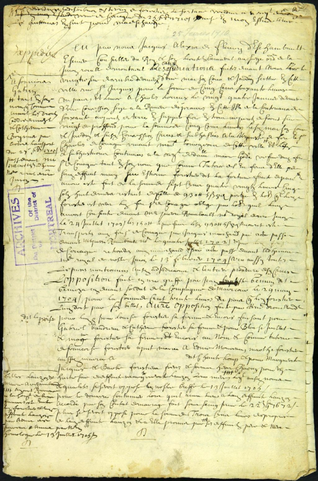 - Procès entre Marie Godé, veuve de Charles de Couagne, demanderesse, et Étienne Forestier dit Lafortune, défendeur, pour la saisie de terres et jardins