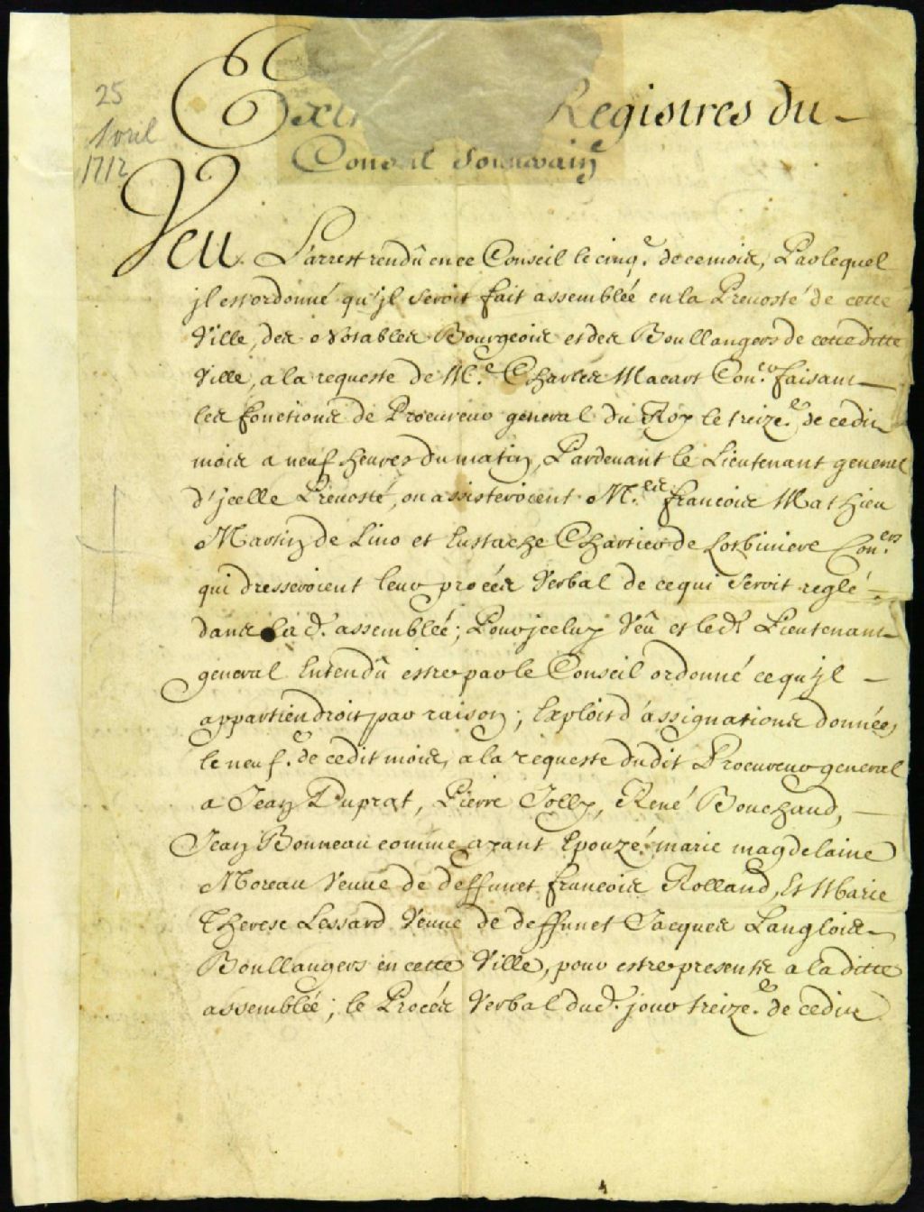 - Ce dossier d'administration judiciaire est composé d'une transcription d'un extrait d'une assemblée de la Prévôté de Québec pour fixer le prix du pain