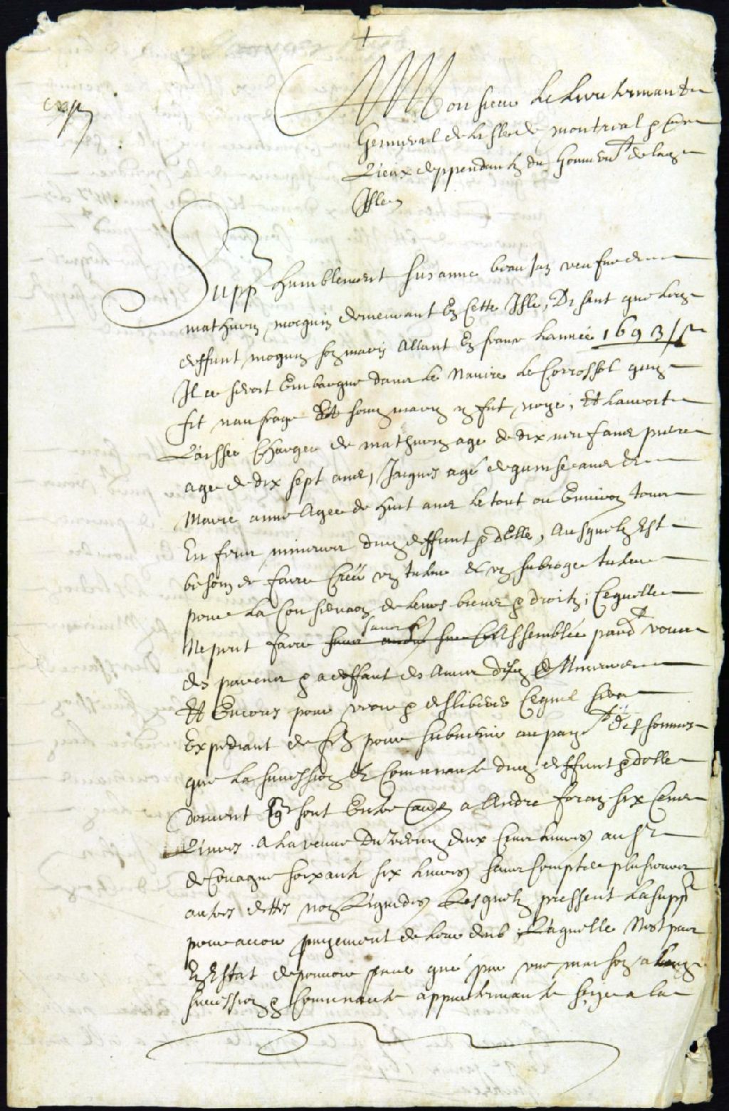 - Ce dossier d'administration judiciaire est composé des pièces suivantes : la requête de Suzanne Beaujean, veuve de Mathurin Moquin, noyé en 1693 dans le naufrage du navire le "Carrossel" en route pour la France, pour faire tenir une assemblée de parents et amis afin d'élire un tuteur pour ses enfants mineurs et l'autoriser à vendre la maison et l'emplacement par licitation ; l'Ordre de tutelle portant avis de vendre la maison et l'emplacement et l'avis favorable du procureur du roi; la requête de Suzanne Beaujean pour la criée, la permission du lieutenant général et la requête en certification des criées, par deux praticiens