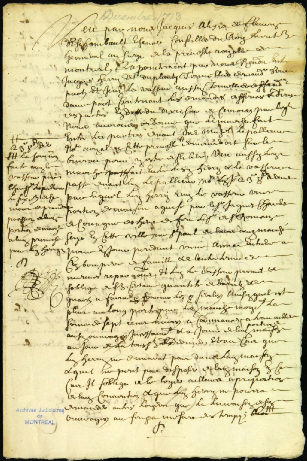- Procès entre Jacques Héry dit Duplanty, tonnelier, demandeur, et Jean Levasseur, tonnelier, défendeur, pour le respect d'un marché