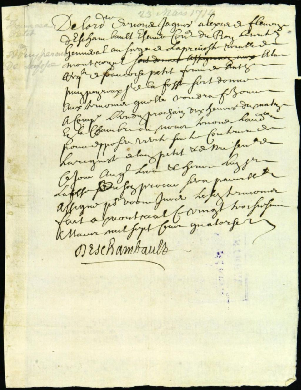 - Procès entre Françoise Petit, demanderesse, et son époux Antoine Puypérou, sieur de LaFosse, défendeur, pour séparation de biens