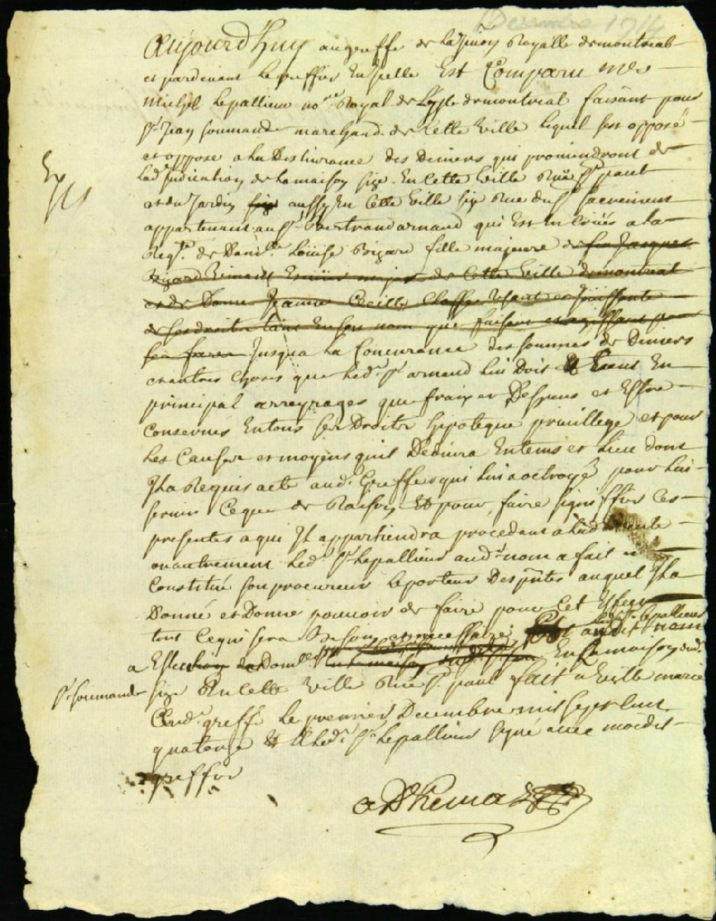 - Ce dossier de matière civile comprend plusieurs oppositions sur la délivrance des deniers qui proviendront de la vente par criée de la maison et du jardin appartenant à Bertrand Arnaud, fait à la requête de Louise Bizard. Les opposants sont entre autres Jean Soumande, marchand ; Augustin Legardeur, sieur de Courtemanche ; Pierre Raimbault ; les enfants mineurs de Bertrand Arnaud ; Pierre Derivon, sieur de Budemont ; et Charles Lepailleur, au nom des religieuses hospitalières de l'Hôtel-Dieu