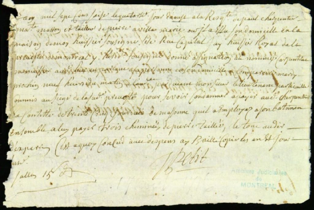 - Procès entre Paul Charpentier, maçon et tailleur de pierre, demandeur, et Paire dit Carpentras, menuisier, défendeur, pour le paiement de travaux de maçonnerie