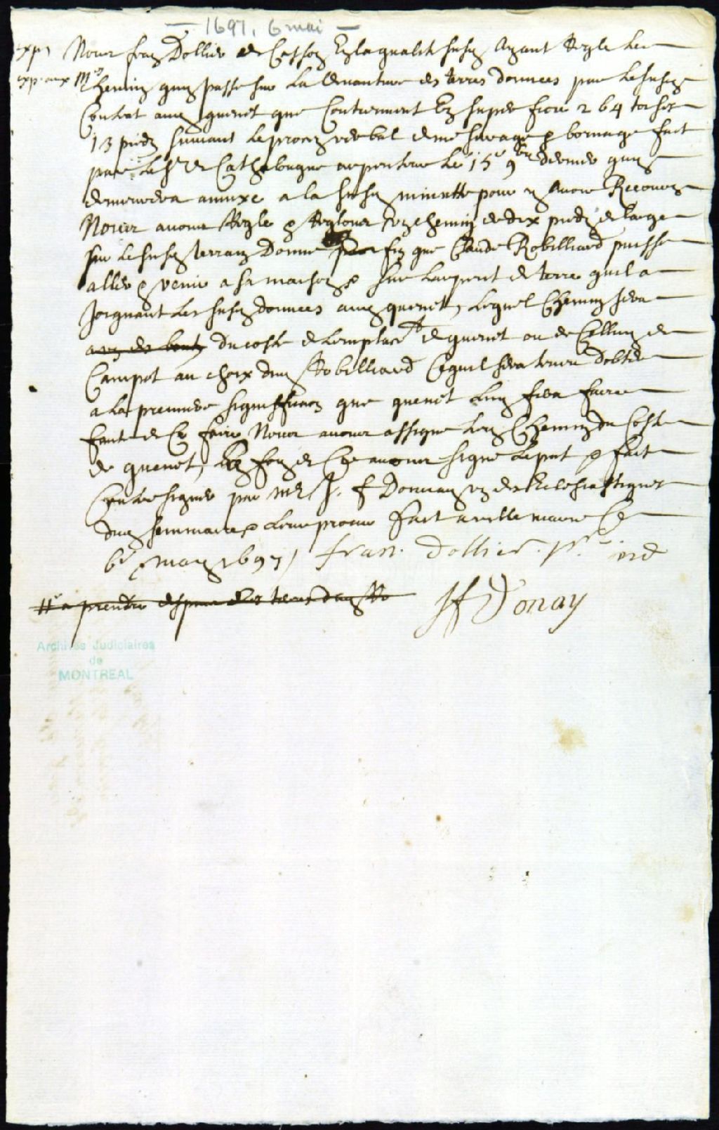 - Règlement de François Dollier de Casson, supérieur des Sulpiciens, pour l'établissement d'un chemin d'accès à la maison de Claude Robillard
