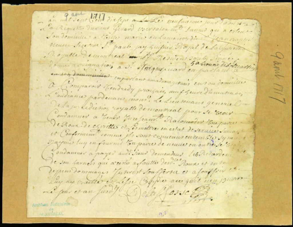 - Procès entre Gérard Barsalou, marchand, tanneur, demandeur, et Jacques Picard de Saint-Martin, défendeur, pour la réparation de roues de charrette