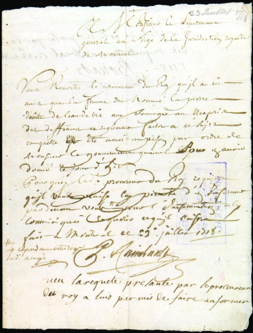 Procès contre Françoise Achin, épouse de Pierre Bardet dit Lapierre, et Jeanne Hébert, épouse de Nicolas Collet dit Malouin, sieur de Cargray, respectivement accusées de vente de boisson aux sauvages et vente de boisson sans permis, 23 juillet 1718 - 6 août 1718, Archives nationales à Montréal, Fonds Juridiction royale de Montréal, (06M,TL4,S1,D2260).