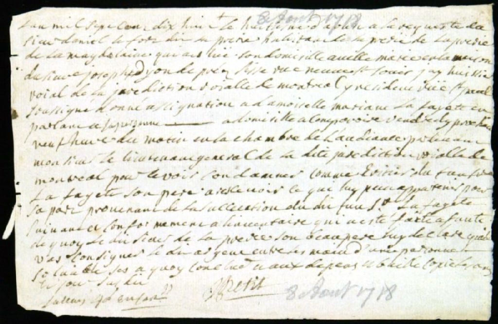 Réglement de la succession de feu Mathieu Faye, époux de Marguerite Moreau, 8 août 1718, Archives nationales à Montréal, Fonds Juridiction royale de Montréal, (06M,TL4,S1,D2272).