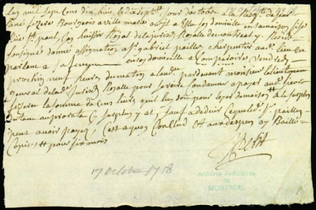 - Ce dossier de matière civile est composé de l'assignation servie à Gabriel Paillé à la requête de René Fezeret pour lui payer la somme de cent livres représentant son loyer dû pour les six derniers mois