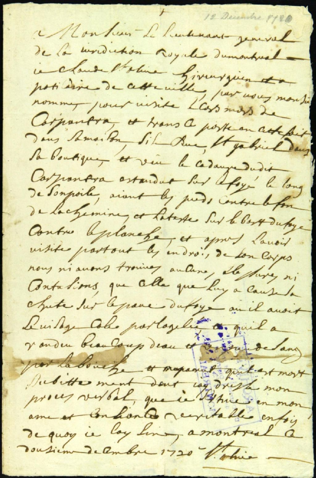 Règlement de la succession de François Paire dit Carpentras, menuisier, habitant d'Avignon en France, 12 décembre 1720 - 15 juillet 1723, Archives nationales à Montréal, Fonds Juridiction royale de Montréal, (06M,TL4,S1,D2579).