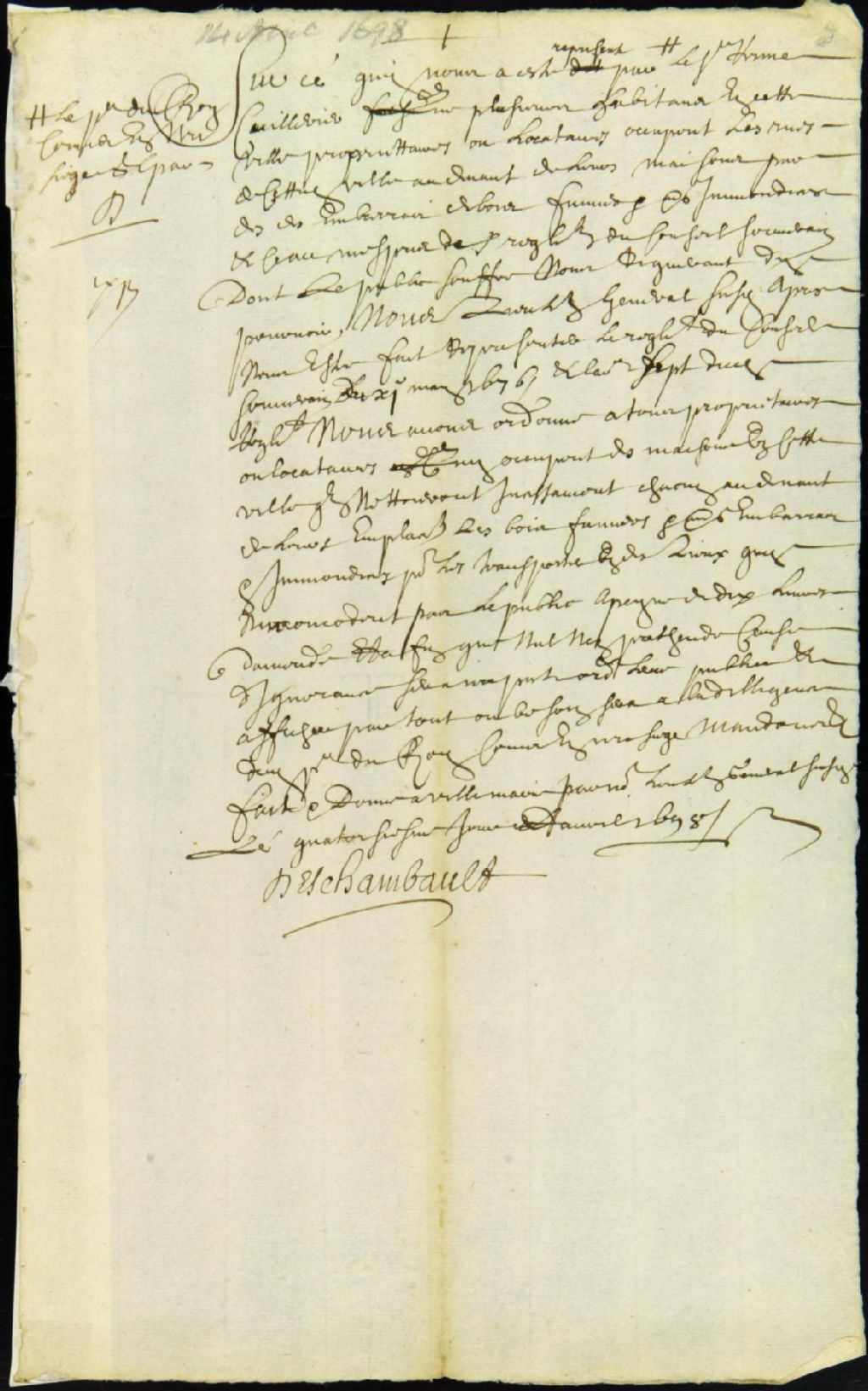 - Ce dossier d'administration civile est composé de l'ordonnance par le lieutenant général intérimaire J. A. Fleury Deschambault à l'effet que tous " les propriétaires et locataires occupants des maisons dans cette ville doivent nettoyer au devant de leurs emplacements, les bois, fumier et embarras pour les transporter en des lieux qui n'incommoderont pas le public "