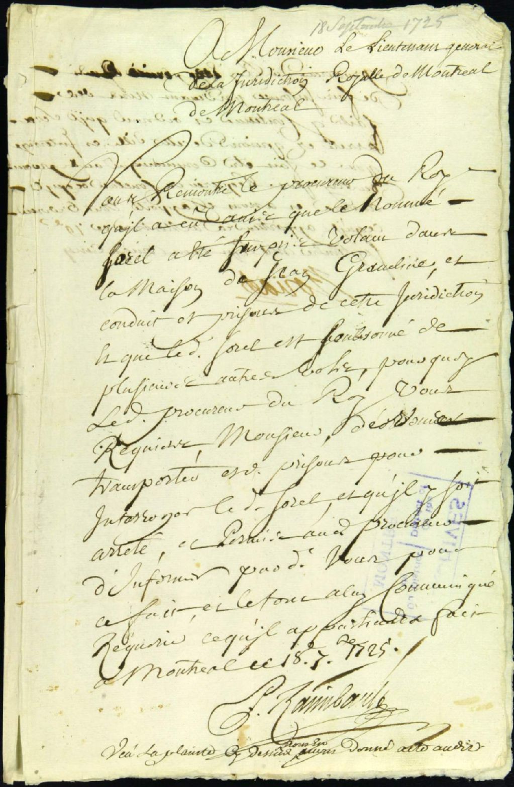- Procès entre Jean-Baptiste Baudreau dit Graveline, boucher, plaignant, et Pierre Saurel dit Saurel, natif d'Amboise, caporal destitué de la Compagnie Budemont, accusé, pour vol