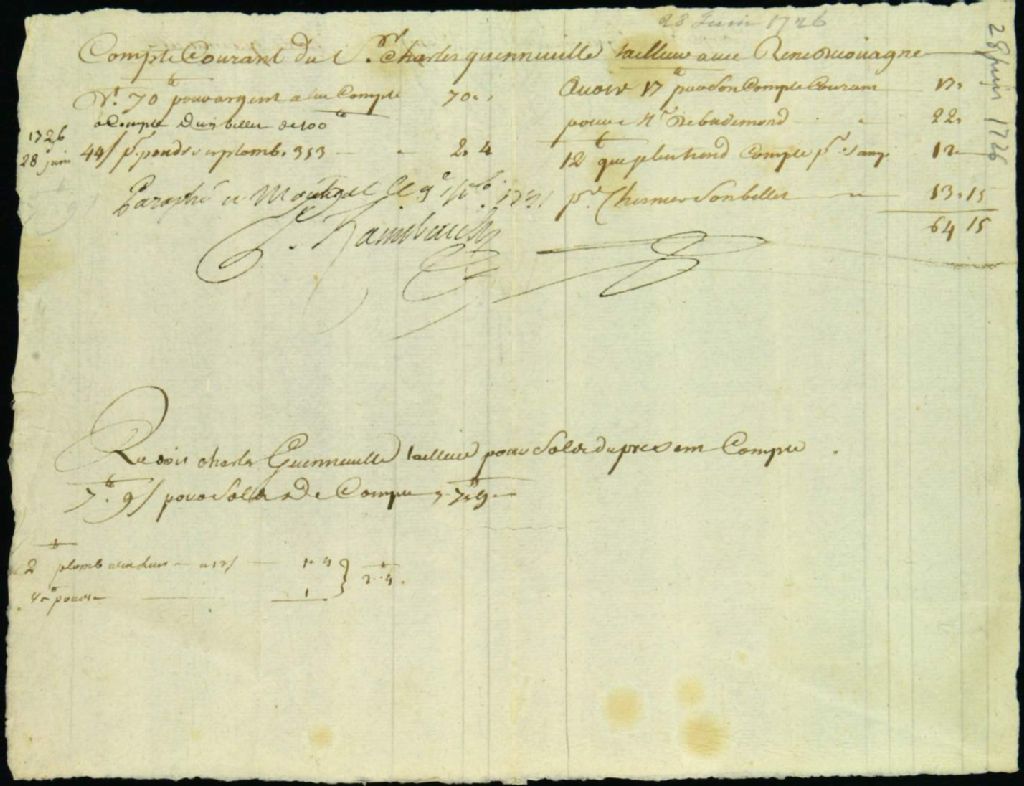État de compte de Charles Quenneville, tailleur, à René de Couagne