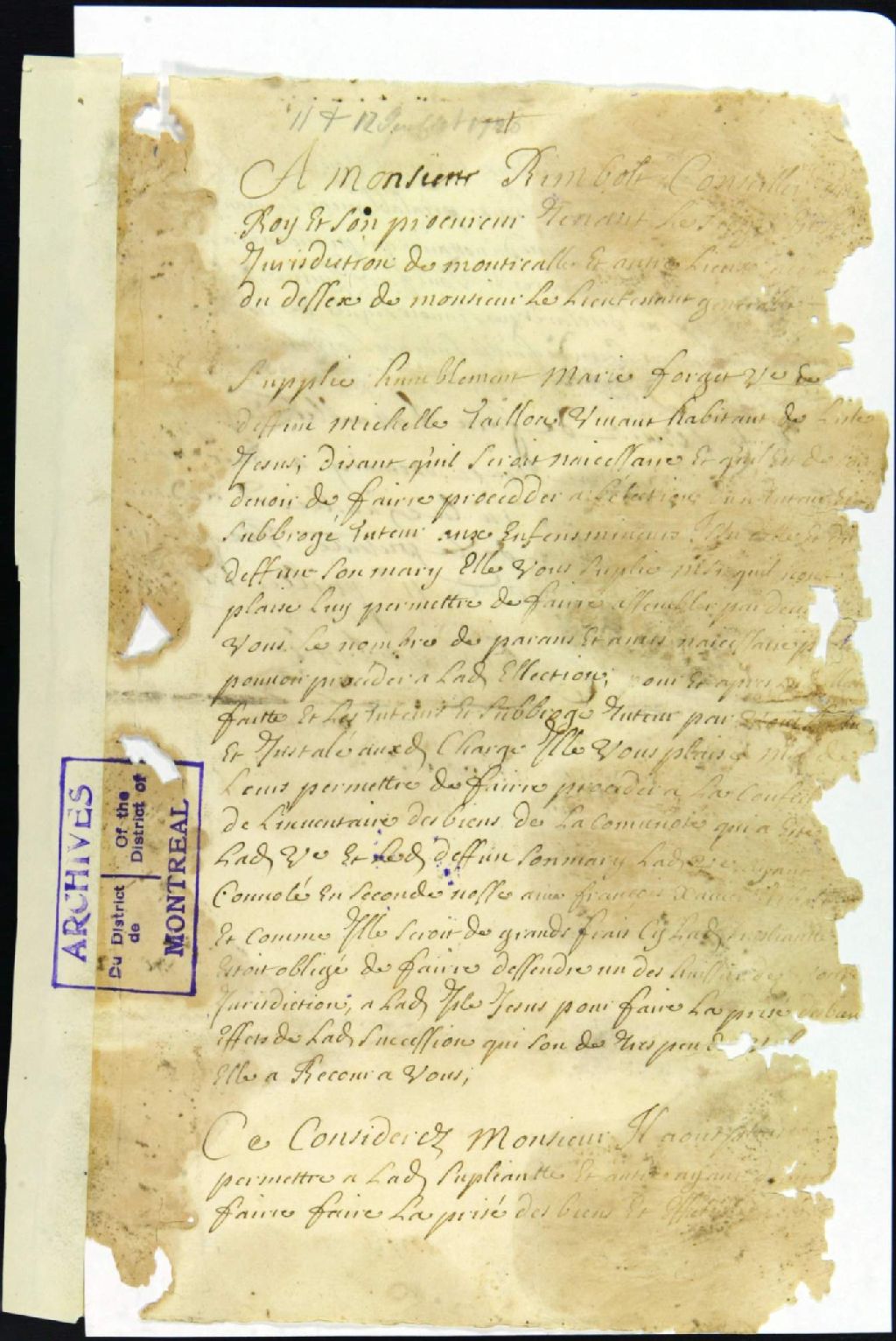Tutelle des enfants mineurs feu Michel dit Taillon et de Marie Forget, 11 juillet 1726 - 12 juillet 1726, Archives nationales à Montréal, Fonds Juridiction royale de Montréal, (06M,TL4,S1,D3296).