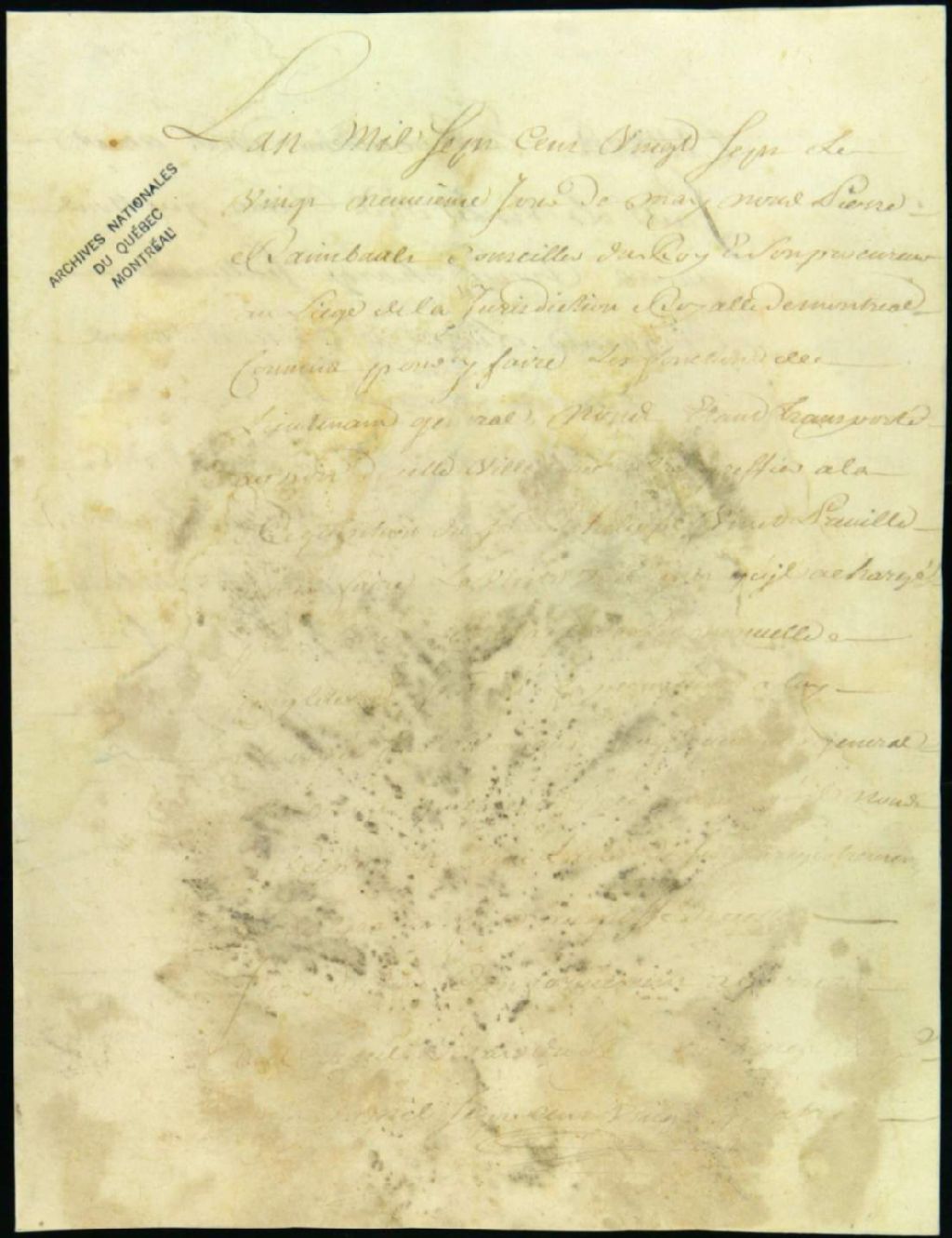 Inspection du canot de Philippe Vinet dit Préville, 29 mai 1727, Archives nationales à Montréal, Fonds Juridiction royale de Montréal, (06M,TL4,S1,D3364).