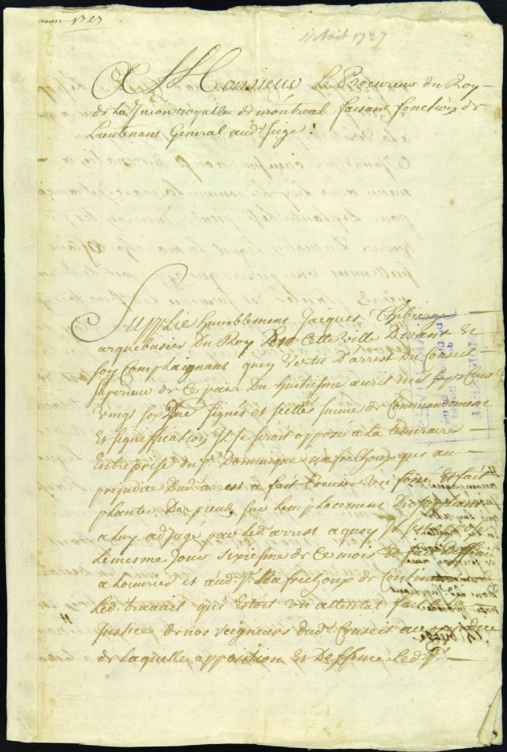 - Ce dossier de matière criminelle est d¿abord composé de la plainte de Jacques Thibierge disant qu'il se serait opposé à la construction d'une clôture en pieux, érigée sur son emplacement par Dominique Nafrechou, 43 ans, et qu'en tentant de l'enlever, son employé nommé Lamarche a été frappé par Nafrechou au moyen d'une canne et lui-même giflé par ce dernier. Le plaignant demande la tenue d'une information. Le dossier contient ensuite : la récusation de Pierre Raimbault pour des raisons de parenté avec l'accusé ; l'ordre de Michel Lepailleur pour faire assigner les témoins de Thibierge ; les demandes de celui-ci et de Nafrechou pour faire assigner leurs témoins respectifs ; la requête de Nafrechou pour le désistement de Michel Lepailleur ; le désistement qui s¿en suit ; l'ordonnance d'assigner les témoins du plaignant ; l'information judiciaire ; la communication du dossier à Jean-Baptiste Tétreau, procureur du roi commis ; la requête pour " l'adjournement " de Nafrechou ; l'assignation de ce dernier; la permission de faire approcher ses témoins ; son interrogatoire ; la liste des questions à poser à ses témoins ; l'enquête avec interrogatoires desdits témoins ; les conclusions du procureur du roi commis pour le renvoi de Nafrechou ; la sentence par Nicolas Senet qui le condamne à 150 livres d'amende pour avoir donné publiquement un soufflet à Thibierge et la défense de médire et méfaire aux parties.Plusieurs témoins sont mentionnés dans ces documents : Catherine Catin, 36 ans, épouse de Pierre Chartier ; Pierre Godefroy de Vieuxpont, 43 ans ; Barthélemi de Saint dit Picard, 22 ans, soldat de la compagnie Beaujeu ; [Seneau dit Laviolette?], 60 ans, sergent de la compagnie Lanoue ; Ourson Jacquet dit Tourangeau, 38 ans, soldat de Montigny ; Joseph Papin, 22 ans, commis au magasin du roi ; Joseph Saulquin dit Saint-Joseph, 31 ans, employé de boulangerie ; Jacques Benoît dit Laguerre, 40 ans, soldat de la compagnie Montigny ; François Léonard dit Laviolette, 42 ans, boulanger du roi ; Jacques Beneteau dit Sanspeur, 25 ans, soldat de la compagnie Montigny ; Marie-Françoise Lafontaine, 20 ans, fille lavandière ; Joseph Guyon Després, 58 ans, bourgeois ; Nicolas Person dit Lafond, 59 ans, travaillant au magasin du roi ; Joseph Francoeur, 20 ans, domestique de Després ; Marie-Anne Duchesne, 23 ans, servante de Pierre Chartier ; Marie-Renée Gauthier, 25 ans, servante de Ignace Gamelin ; et Pierre Chartier, 59 ans, marchand et bourgeois