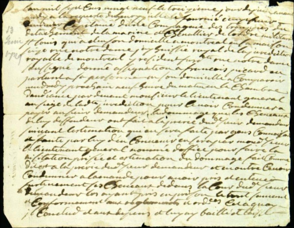 - Procès entre Henri-Jules Lefournier DuVivier, capitaine, chevalier de l'ordre de Saint-Louis, demandeur, et François Picard, défendeur, concernant des dommages faits par des chevaux
