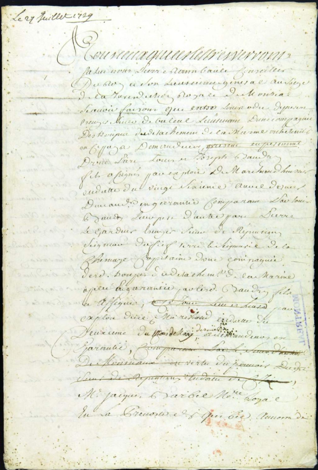 Procès entre Louis-Odet de Piercot, sieur de Bailleul, lieutenant, demandeur, et Louis et Joseph Beaudry, fils de Louis, défendeurs, pour le recouvrement d'une concession, 29 juillet 1729 - 23 février 1733, Archives nationales à Montréal, Fonds Juridiction royale de Montréal, (06M,TL4,S1,D3633).