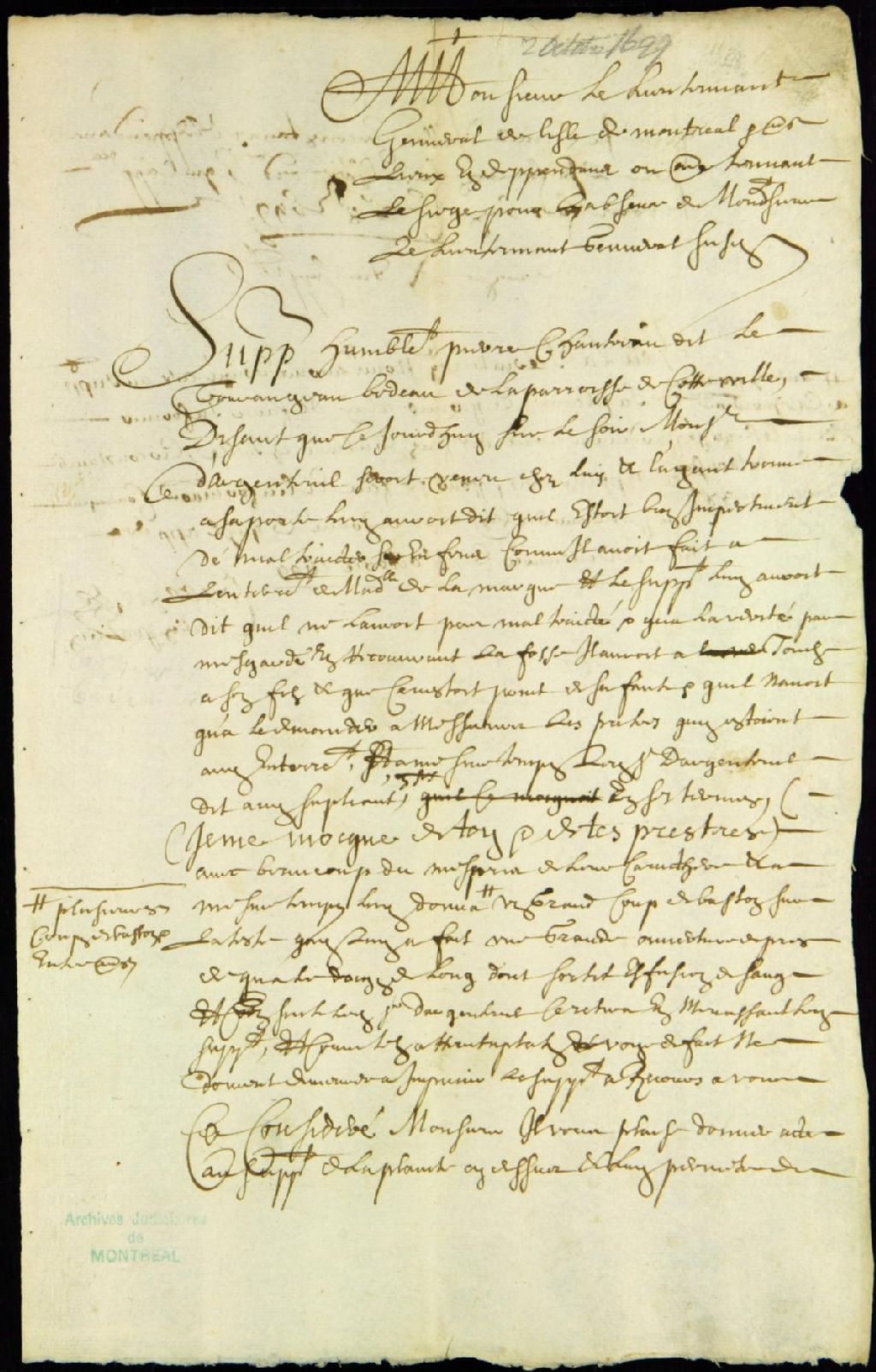- Procès entre Pierre Chantereau, bedeau, plaignant, et Pierre d'Ailleboust, sieur d'Argenteuil, accusé de voies de fait