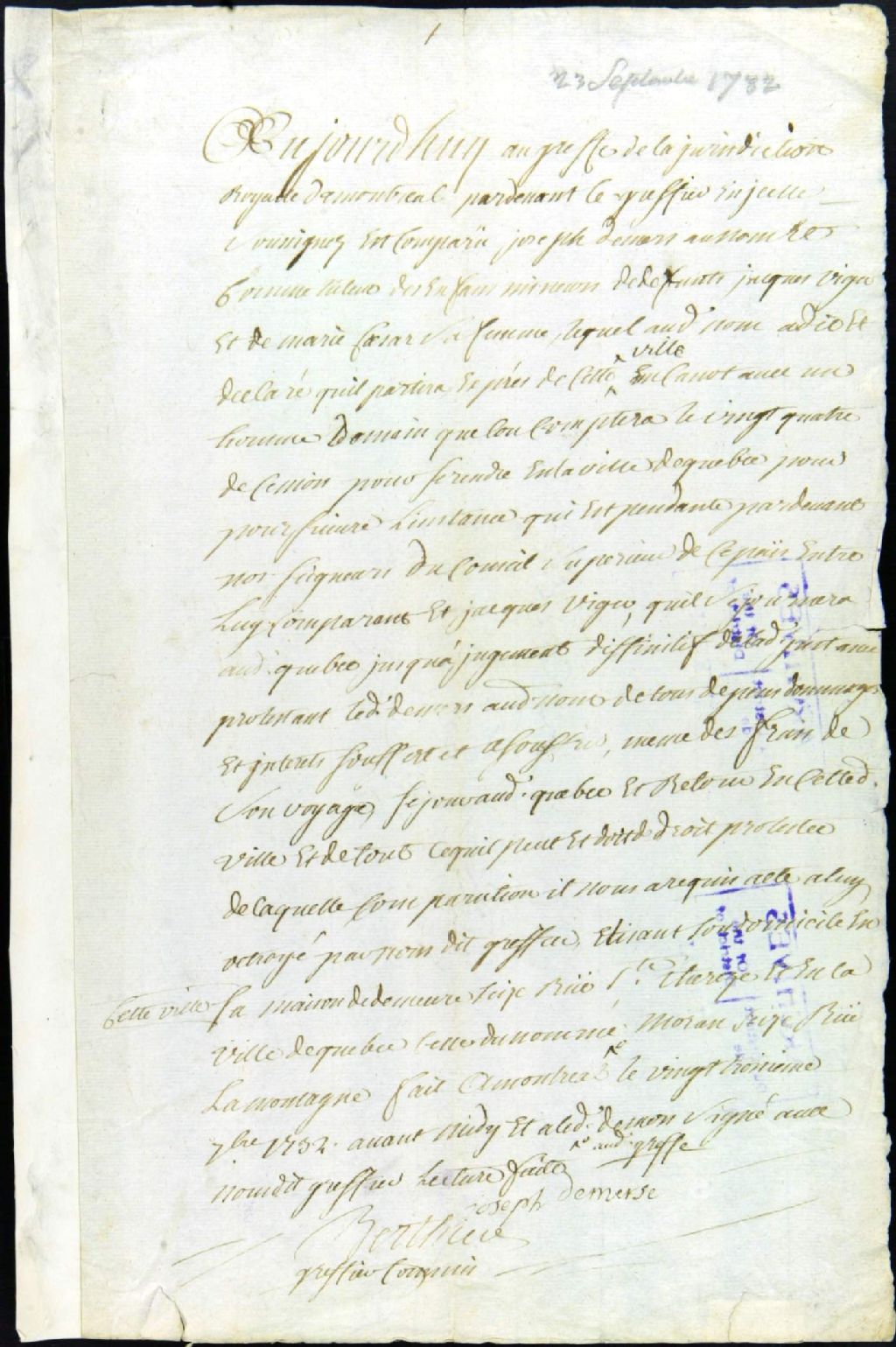 - Ce dossier de matière civile est composé de l'acte de départ par Joseph Demers, en sa qualité de tuteur des enfants de défunts Jacques Viger et Marie César, disant se rendre au Conseil Supérieur de Québec afin de poursuivre l'instance contre Jacques Viger
