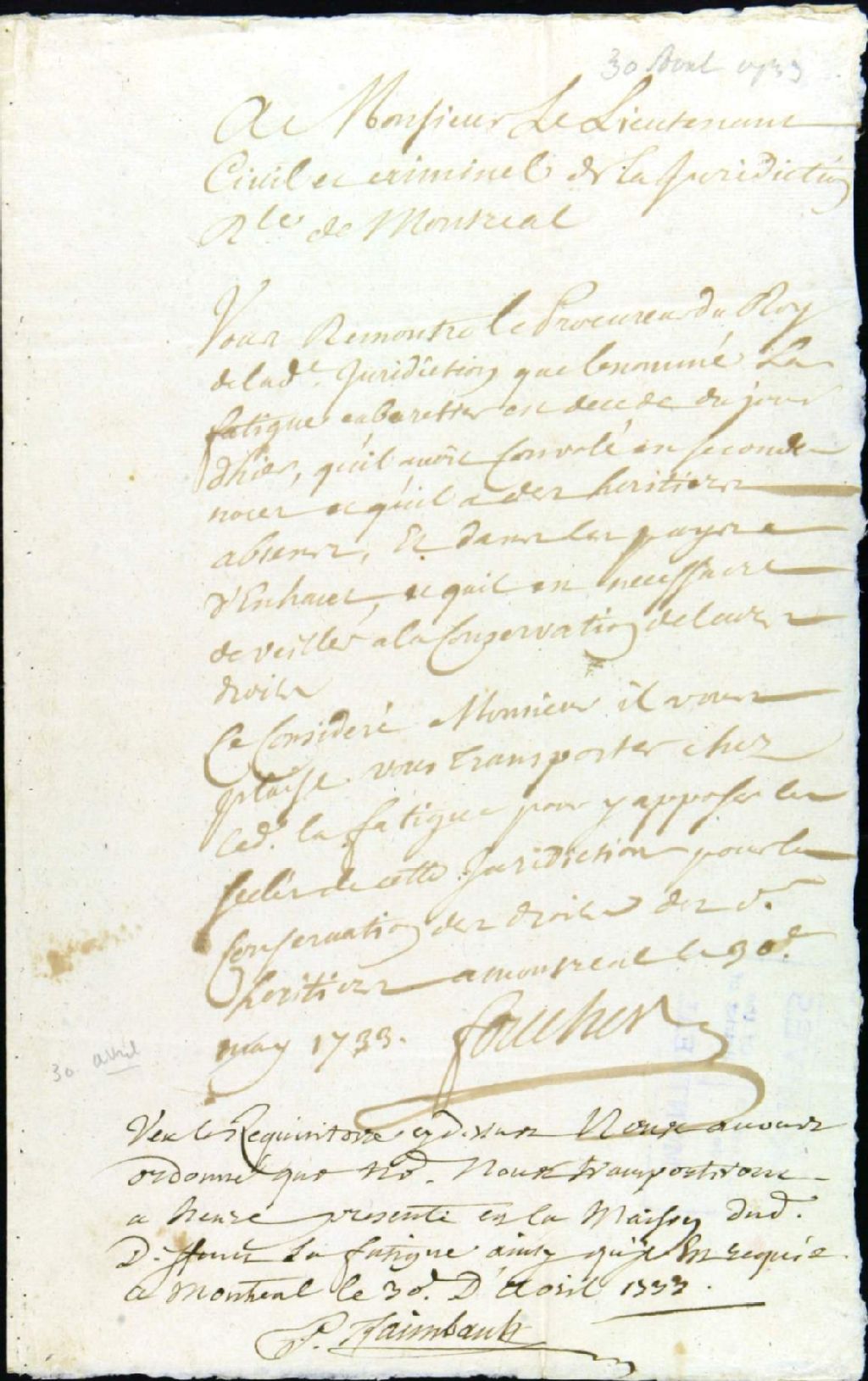 - 30 avril 1733 - 30 juillet 1734