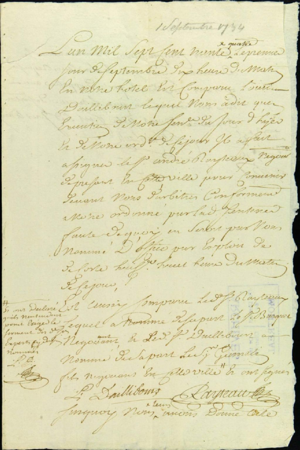 - Procès entre Louis d'Ailleboust, demandeur, et André Rayteau, négociant, défendeur
