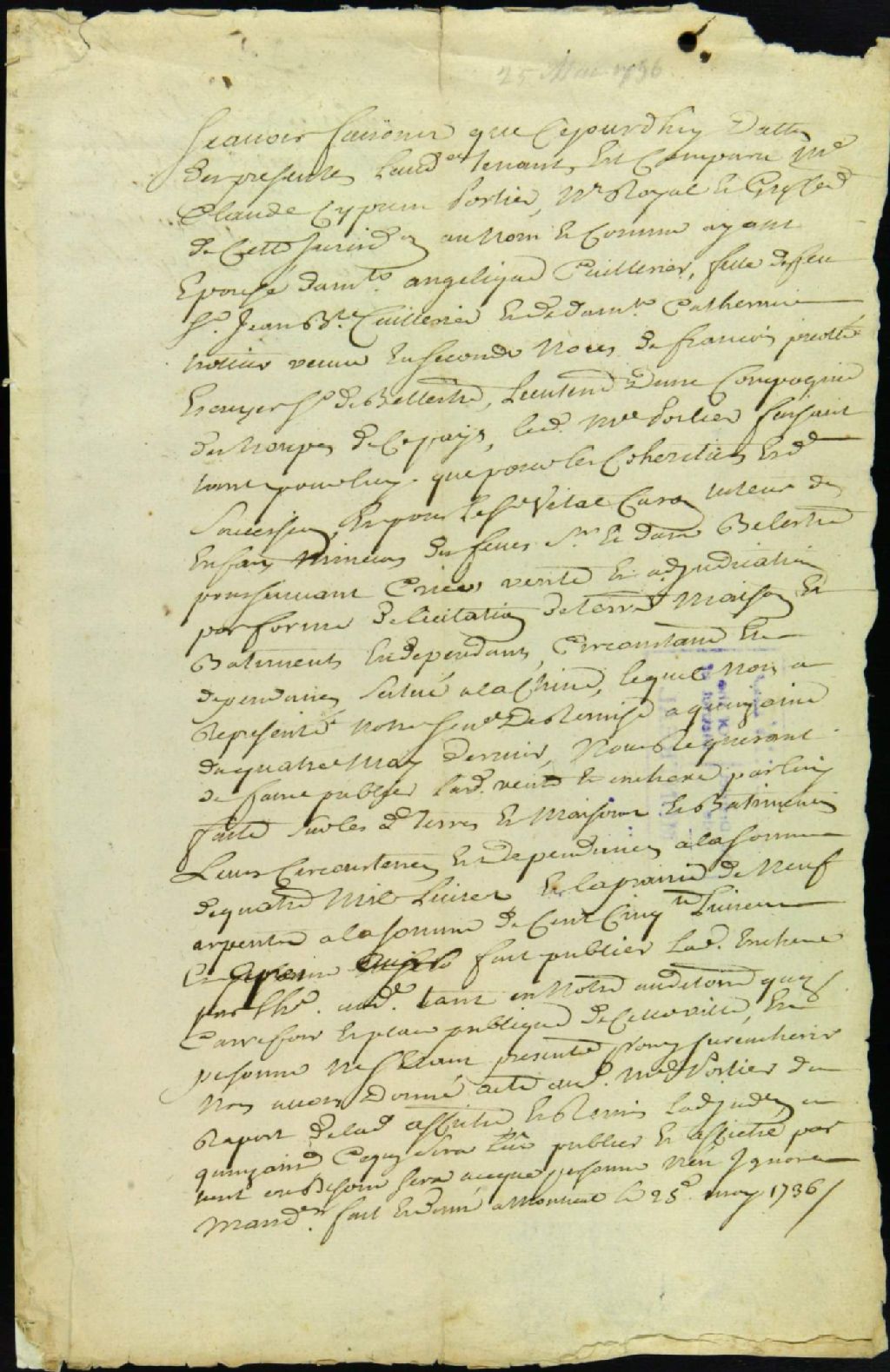 Licitation d'une terre et de bâtiments, situés à Lachine, appartenant à la succession de feu François Picoté de Belestre