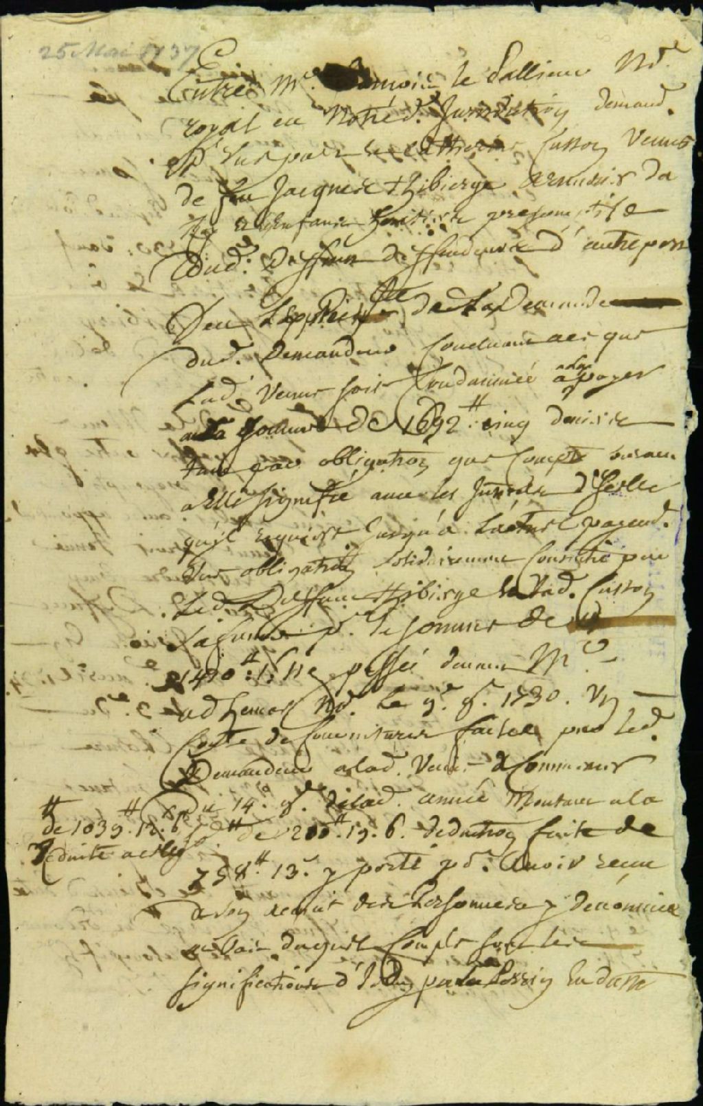 - Procès entre François Lepailleur, notaire, demandeur, et Catherine Cusson, veuve de Jacques Thibierge, armurier, et la succession de ce dernier, défendeurs, pour dettes