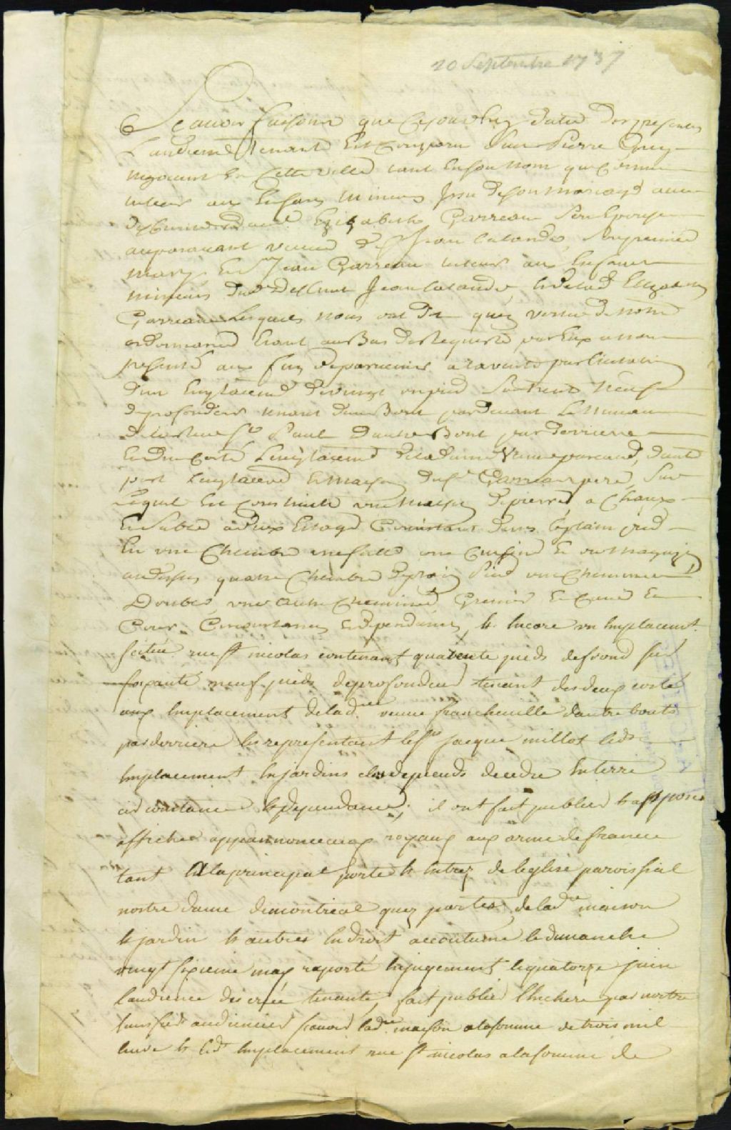- Ce dossier d'administration judiciaire est composé des pièces suivantes : la transcription d'une sentence d'adjudication d'un emplacement situé sur la rue Saint-Paul, appartenant aux héritiers, vendu par licitation ; et la sentence d'ordre et distribution des deniers provenant de la vente de l'emplacement de la rue St-Nicolas, adjugé à Durivage. Pierre Guy et Jean Gareau, tuteur des enfants de Jean Lalande, sont mentionnés comme requérant en cette affaire. Jean Trullier dit Lacombe, fils, forgeron, est en outre cité comme adjudicataire