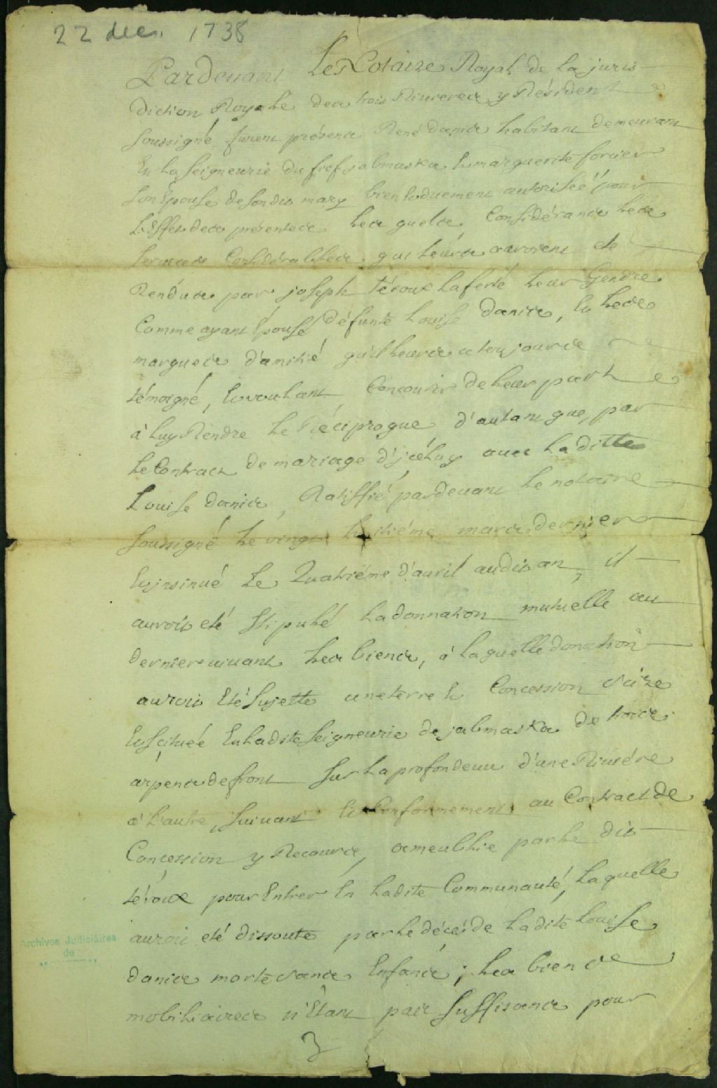 - Accord de cession de terre entre René Danis, son épouse Marguerite Forcier et leur gendre Joseph Théroux dit Laferté, veuf de Louise Danis, de Yamaska