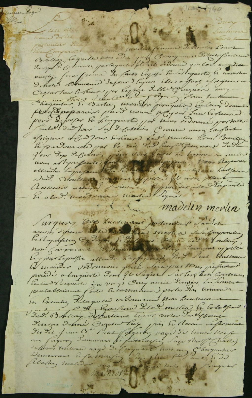 - Ce dossier de matière civile est composé des pièces suivantes : le procès-verbal d'enquête dans une cause en séparation de biens entre Madeleine Marillac et son mari, Nicolas-Louis Boulay ; et l'enquête. Les témoins sont Louis Trudeau, charpentier de la rue St-Paul, âgé de 53 ans ; J.-B. Prat, forgeron de la rue St-Charles, âgé de 39 ans ; et Sébastien Malidor, perruquier de rue St-Charles, âgé de 43 ans
