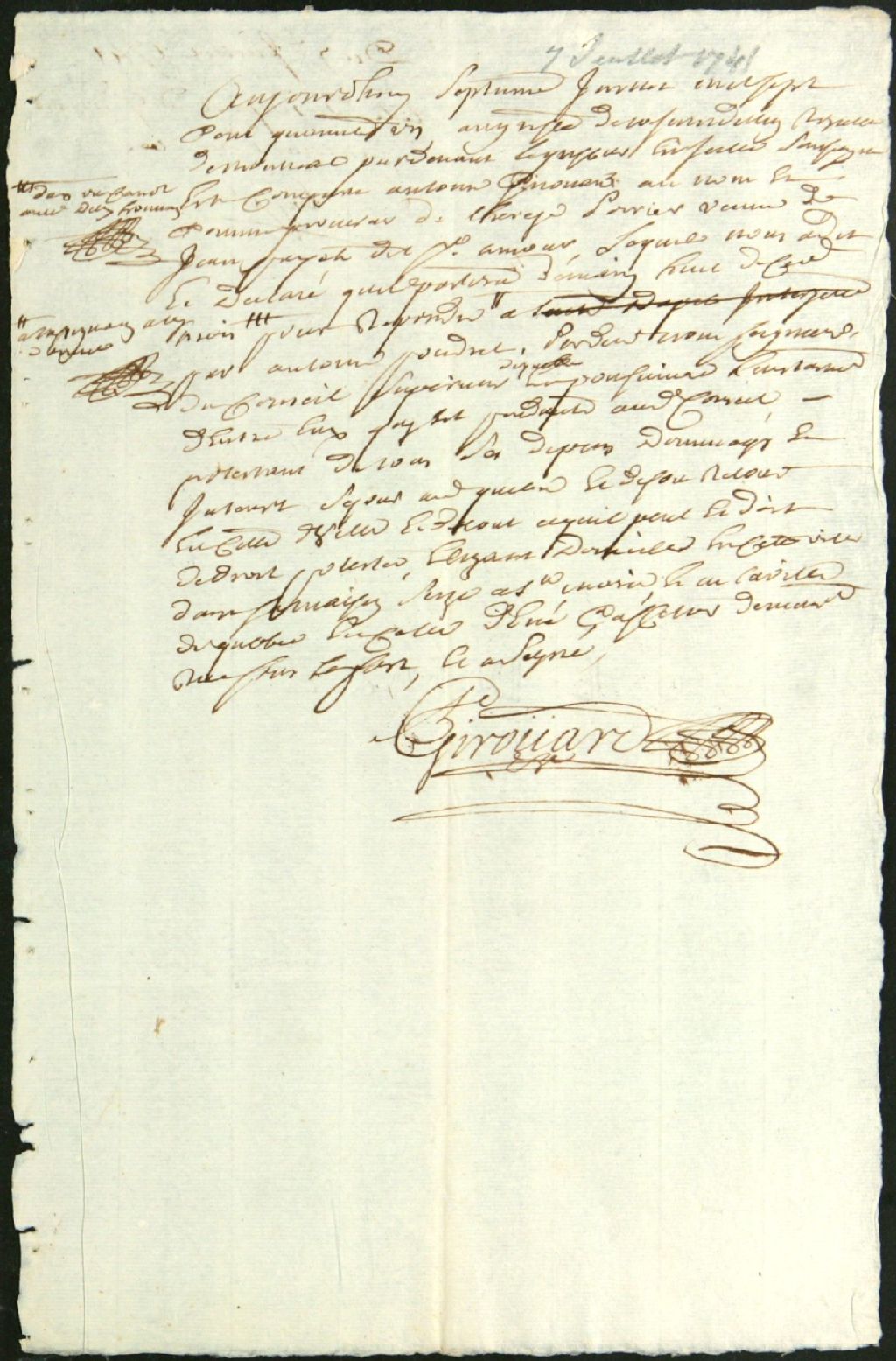 Procès en appel entre Antoine Poudret, requérant, et Thérèse Poirier, veuve de Jean Payet dit St-Amour, intimée, 7 juillet 1741, Archives nationales à Montréal, Fonds Juridiction royale de Montréal, (06M,TL4,S1,D4785).