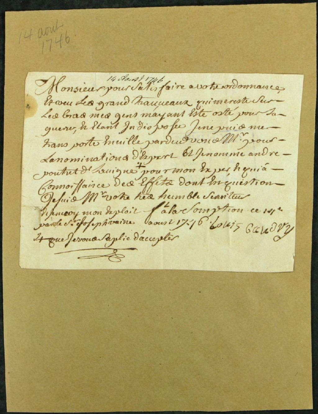 - Procès entre Jacques Senet, Gertrude Daunay, veuve de Nicolas Senet, notaire, et Antoine Bazinet, capitaine de milice de Pointe-aux-Trembles, demandeurs, et Joseph Venne, époux de Suzanne Senet, et Louis Beaudry, tuteur des enfants de Raynaud dit Planchard, défendeurs, pour la vente d'une terre