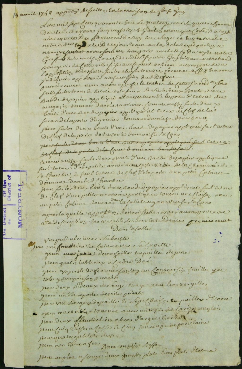 Partage des biens de la communauté de Jeanne Trullier dit Lacombe et de feu Pierre Guy, bourgeois, marchand de la rue Saint-Paul, 14 avril 1748 - 27 juin 1748, Archives nationales à Montréal, Fonds Juridiction royale de Montréal, (06M,TL4,S1,D5365).
