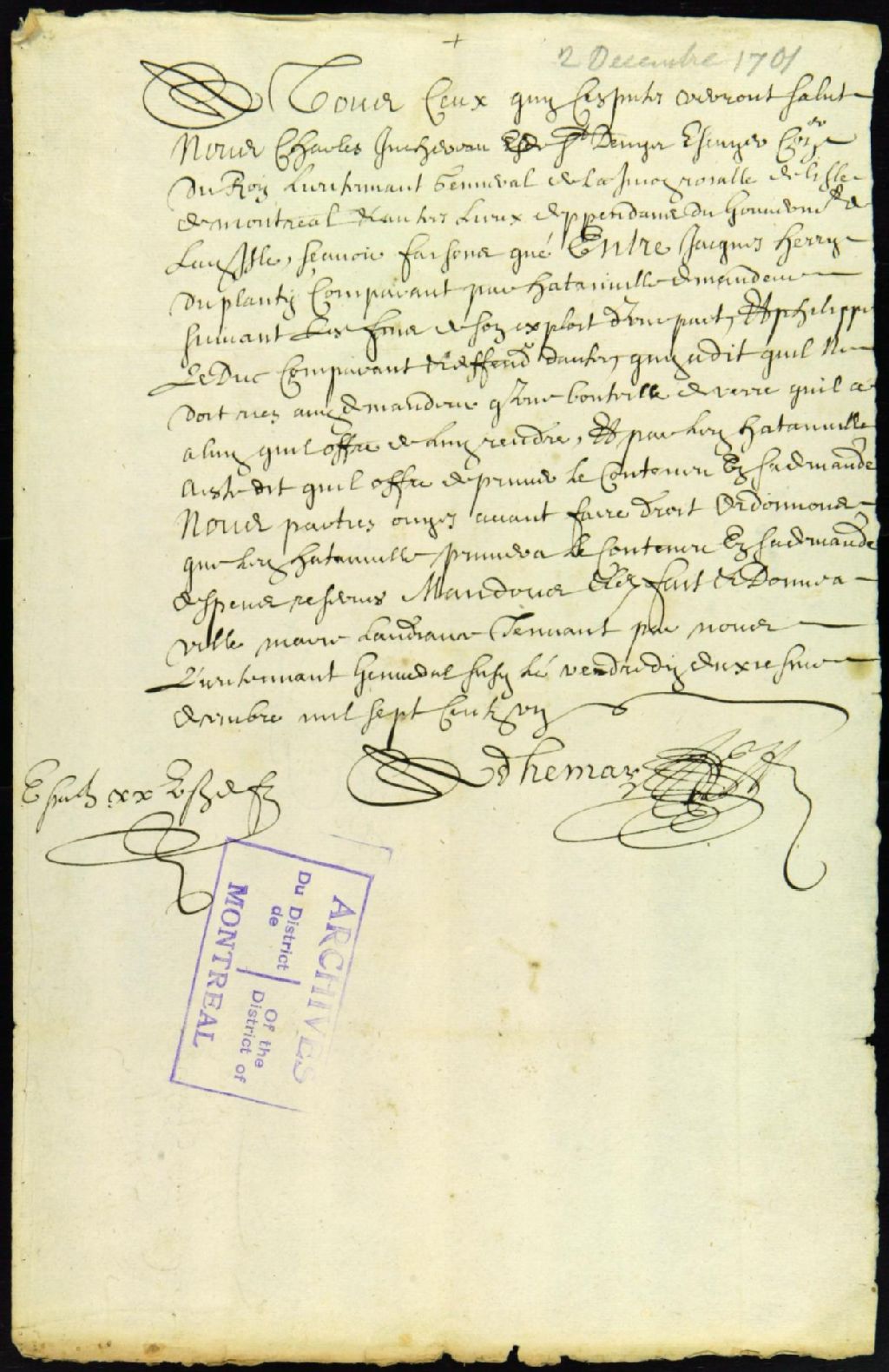 - Ce dossier de matière civile est composé des pièces suivantes : la sentence dans une cause entre Jacques Héry et Philippe Leduc pour le paiement d'une demie corde de bois ; l'enquête au cours de laquelle les témoins de Héry font leurs dépositions et la transcription de l'enquête. Les témoins sont : l'armurier Pierre Prudhomme, 44 ans, le marchand Jean Beauvais, 36 ans, et Joseph Leduc, 40 ans
