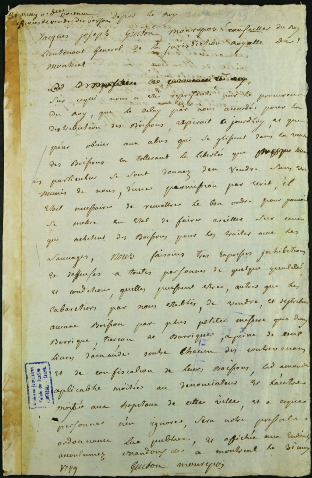 - Ce dossier d'administration civile est composé des pièces suivantes : l'ordonnance par le lieutenant général qui défend à toutes personnes, outre les cabaretiers établis, de vendre ou de distribuer de la boisson par plus petite mesure qu'une demie barrique ; et le rapport de publication