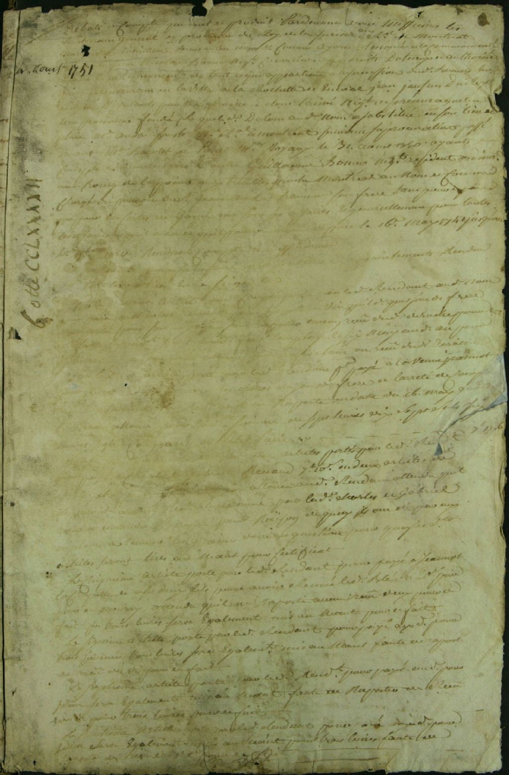 - Ce dossier de matière civile est composé des pièces suivantes : le débat au compte que Marguerite Tourillon, créancière par ses droits dotaux et autorisée à recouvrir ce qui appartient à la succession de feu son époux Jean-Nicolas Beaumer, et encore Jean-Jacques Duroy, écuyer, stipulant par Dulong, l'aîné, de Québec, et sur lieu et place par André Souste, notaire, procureur, contre Guillaume Beaumer, comme héritier bénéficiaire de son défunt frère, par arrêt du Conseil Supérieur ; le soutènement que produit Guillaume Beaumer pour répondre aux allégations de Marguerite Tourillon ; le contredit de celle-ci audit soutènement ; la salvation de Guillaume Beaumer ; l'inventaire des pièces produites par ce dernier contre Marguerite Tourillon ; l'état des dettes à recouvrer par la succession de Beaumer ; la sentence qui condamne Guillaume Beaumer à payer à Marguerite Tourillon et à Jean-Jacques Duroy, écuyer, agissant pour ses fils Pierre et [...]