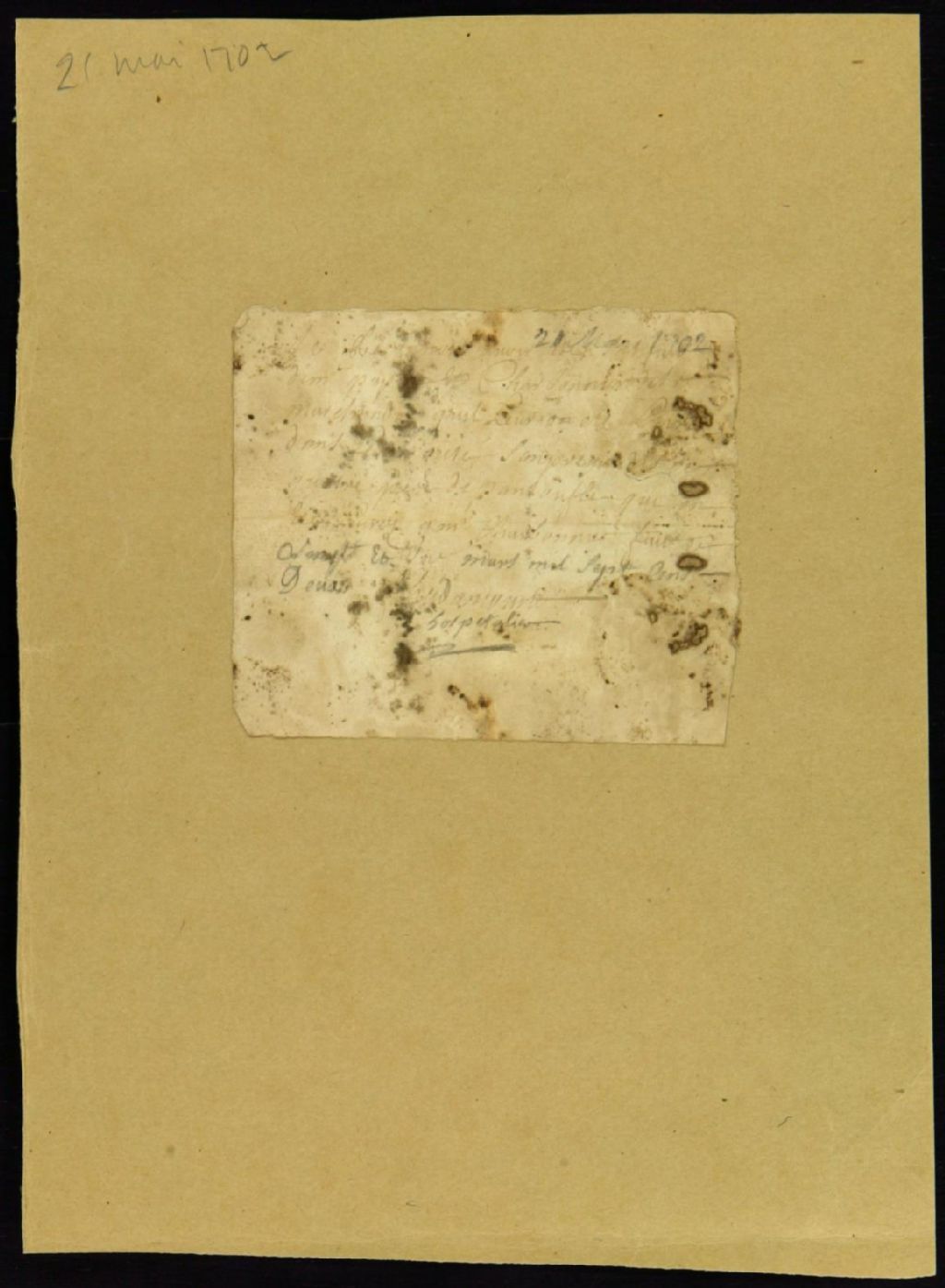Billet signé par F. Hadancourt, frère Hospitalier, 21 mars 1702, Archives nationales à Montréal, Fonds Juridiction royale de Montréal, (06M,TL4,S1,D565).