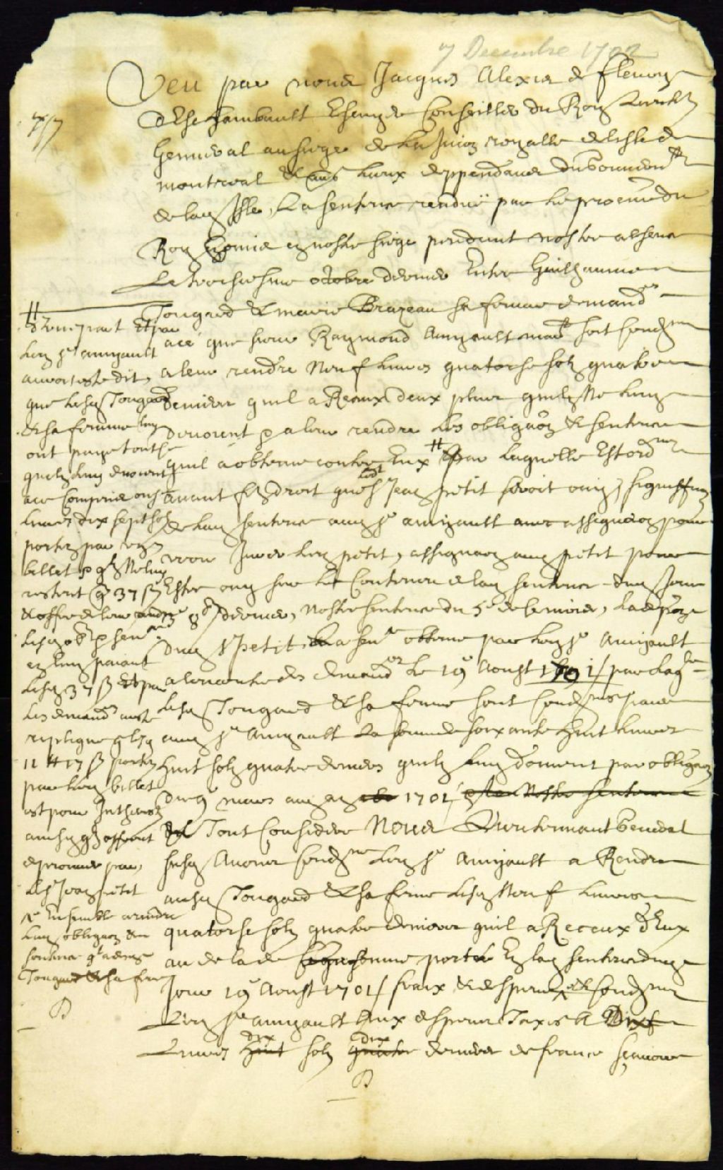 - Ce dossier de matière civile est composé des pièces suivantes : la sentence qui condamne Raymond Amiot, à remettre une somme de 9 livres, payée en trop par Guillaume Tougas et Marie Brazeau ; et la quittance par Marie Brazeau, pour la somme de 25 livres et 6 sols