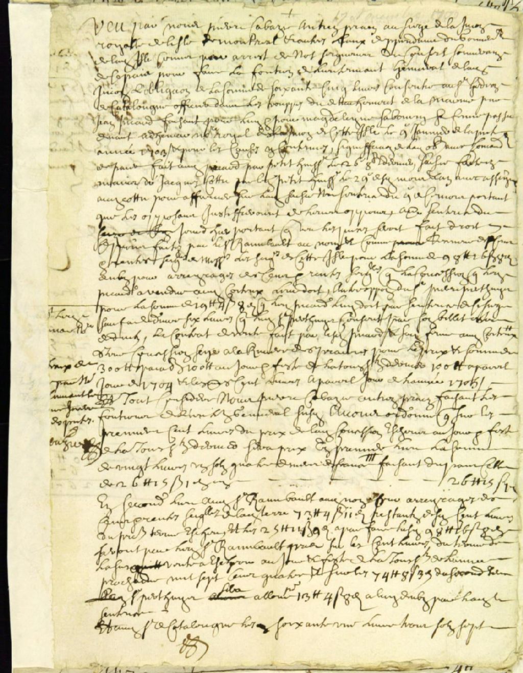 - Procès entre Gédéon de Catalogne, officier, demandeur, et Jean Picard et Madeleine Sabourin, sa femme, défendeurs, pour l'attribution d'une somme sur la saisie d'une concession de Rivière-des-Prairies