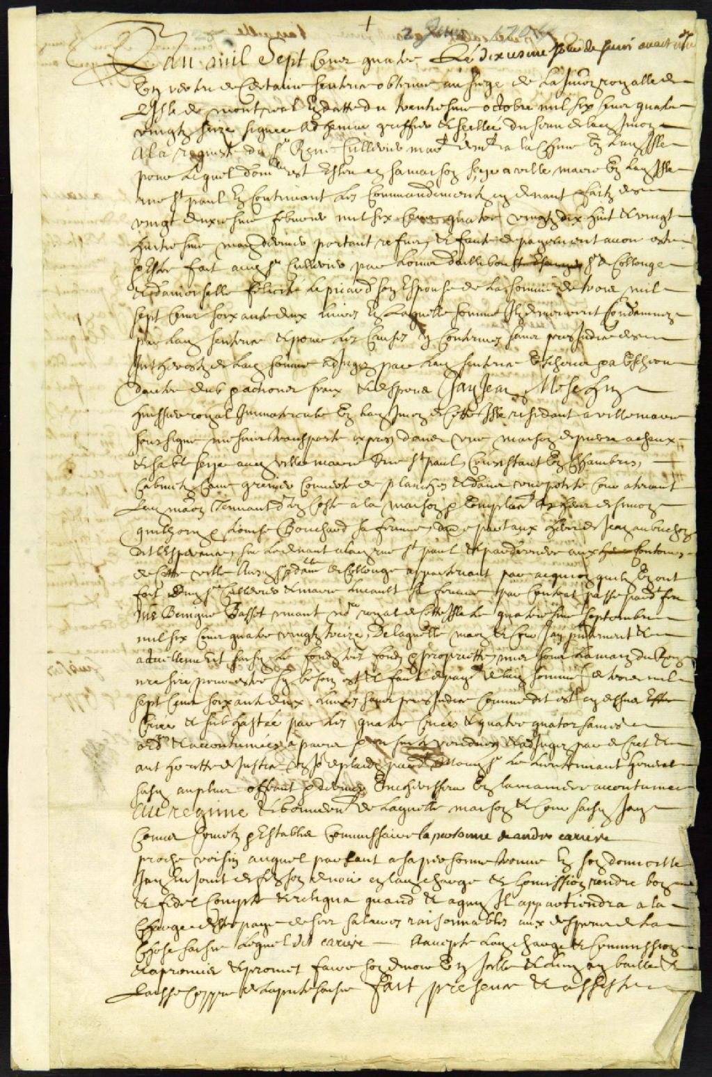 - Ce dossier de matière civile est composé des pièces suivantes : une procuration laissée en blanc, signée par René Cuillerier, donnant le pouvoir de faire saisir la maison qu'il a vendu à Louis d'Ailleboust sur la rue Saint-Paul ; l'affiche de la criée de la maison de chaux et sable et du jardin situés sur cette même rue, à côté de Guillory ; le cahier des quatre criées du 15 juin au 27 juillet 1704 suivi de la certification, le 19 juin 1705 ; la requête de Cuillerier pour nommer deux praticiens pour certifier les procédures ; le rapport d'affiche de sentence de remise d'adjudication ; et l'assignation à comparaître à Louis d'Ailleboust pour proposer des moyens de nullité