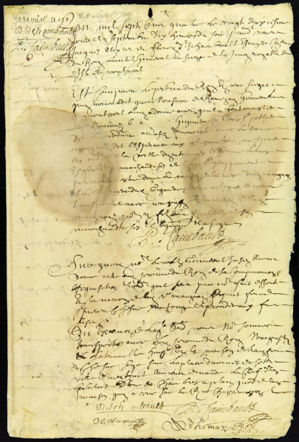 - Ce dossier de matière criminelle est composé des pièces suivantes : la requête pour faire une descente au domicile de la veuve de Jean Magnan dit Lespérance et y trouver les marchandises de traite illégale effectuée auprès des Outaouais par Toussaint Pothier et un nommé Giguère ; et le procès-verbal de la descente faite au domicile de Pierre Chesne dit Saint-Onge, époux de la veuve Magnan, sur la place d'Armes