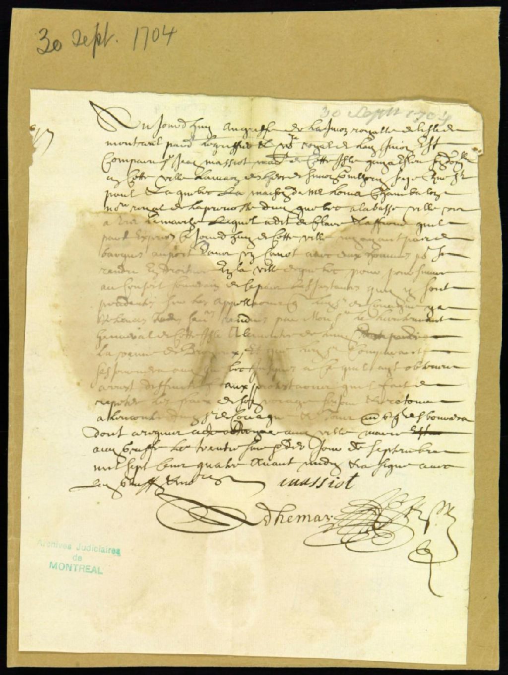 - 30 septembre 1704