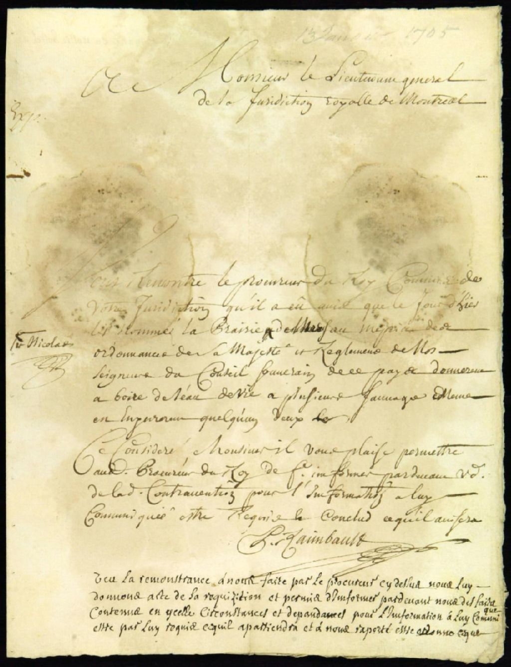 - Procès contre Pierre Meriault dit Laprairie, sergent de la compagnie de Maricourt, accusé de donner de l'eau de vie aux sauvages