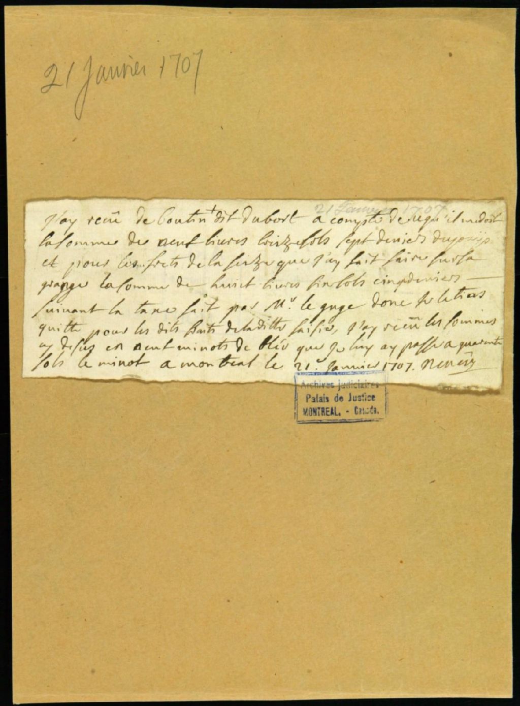 - Quittance à un certain Boutin dit Dubord pour une saisie