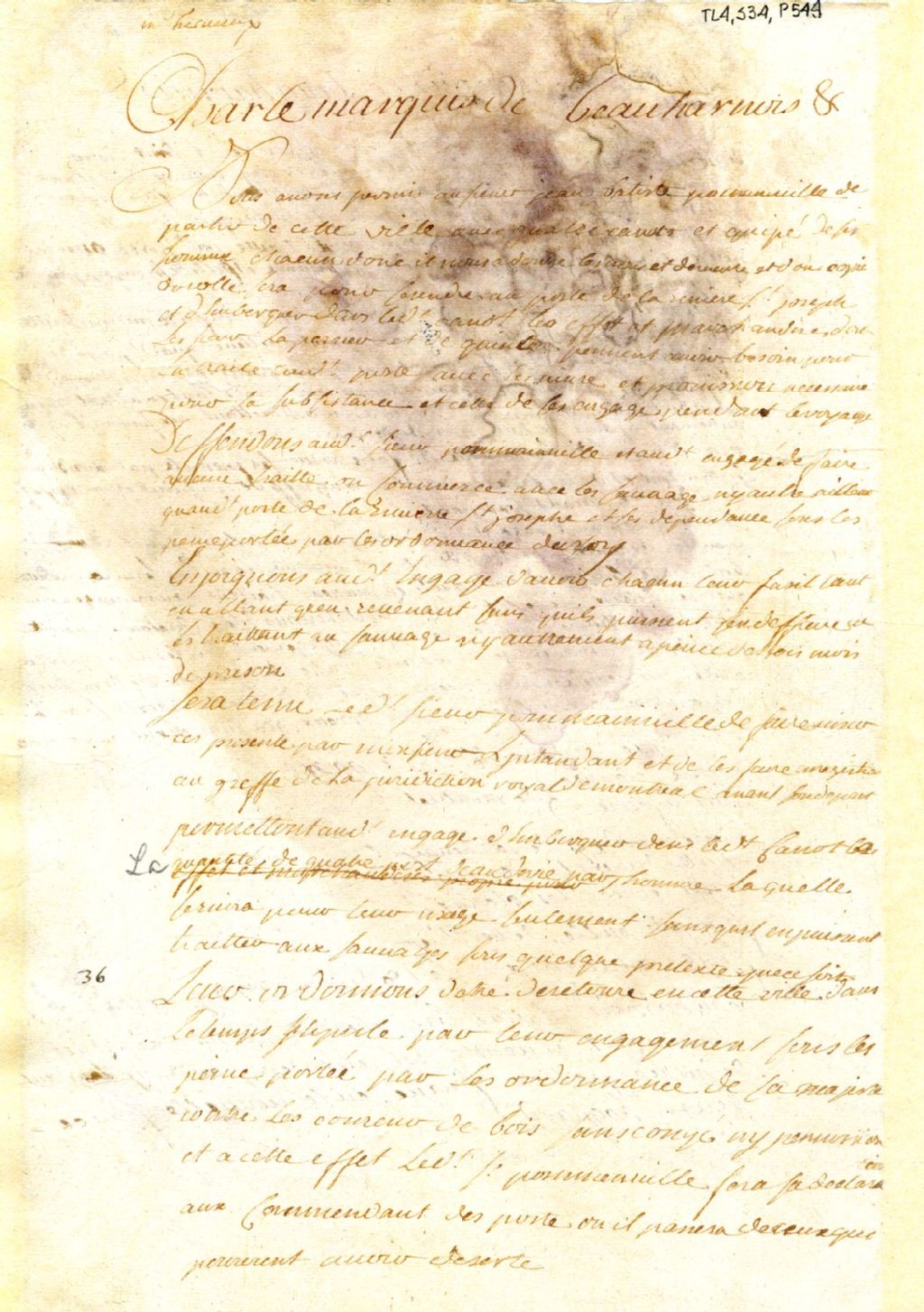 - Montréal. Enregistrement d'une permission accordée par Charles de Beauharnois, gouverneur de la Nouvelle-France, le 18 juin, à Jean-Baptiste Pomainville, de quatre canots et vingt-quatre hommes, pour se rendre au Poste de la Rivière St-Joseph