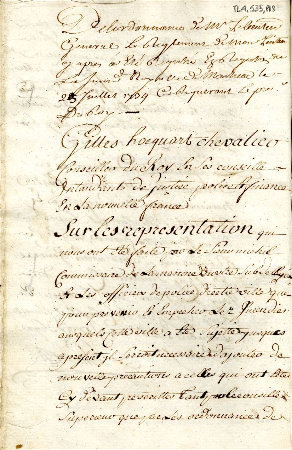 - Montréal. Enregistrement de l'ordonnance de l'intendant Gilles Hocquart du 12 juillet, pour prévenir les incendies à Montréal