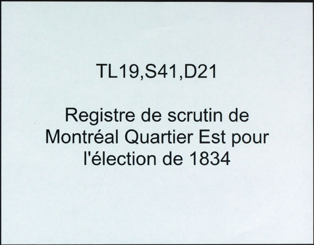 - Registre de scrutin de Montréal Quartier Est pour l'élection de 1834