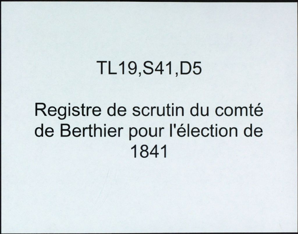 - Registre de scrutin du comté de Berthier pour l'élection de 1841