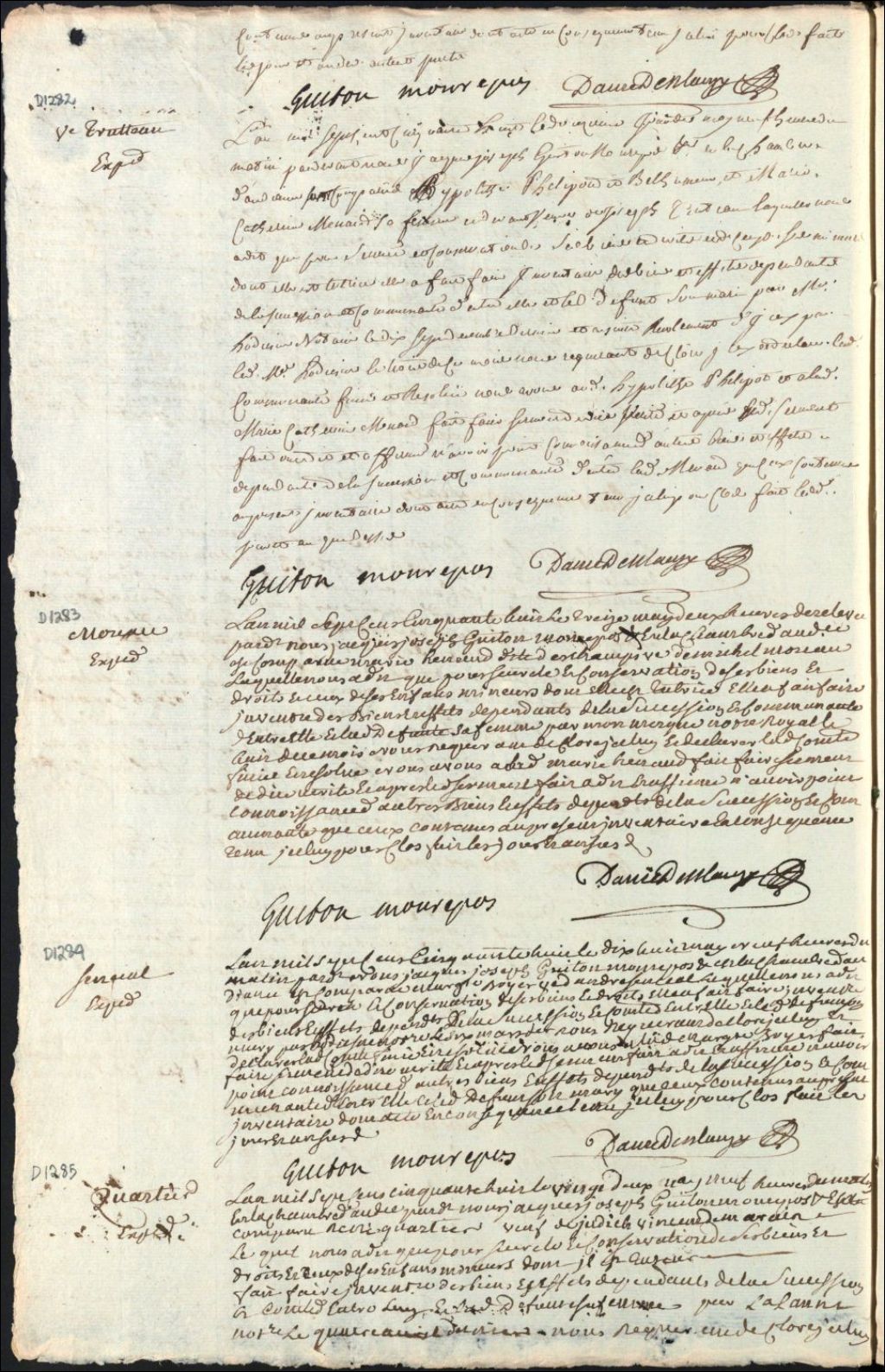 Clôture d'inventaire des biens de la succession et de la communauté de Marguerite Boyer et de défunt André Sénécal, 18 mai 1758, Archives nationales à Montréal, Clôtures d'inventaires. District judiciaire de Montréal, (06M,CV601,S1,D1284).